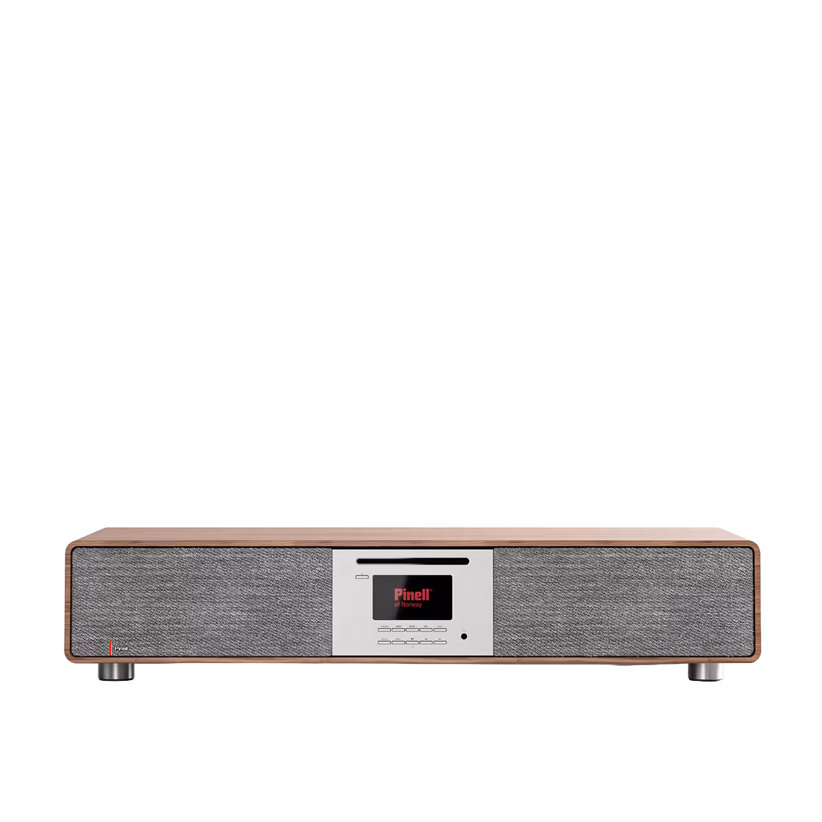 De Pinell Supersound 901 Walnoot is een apparaat dat je niet wegstopt. De akoestisch geoptimaliseerde frontstof is afkomstig van Kvadrat en wordt volgens Pinell klimaatneutraal geproduceerd in Noorwegen. Het resultaat is een rustige, luxe uitstraling die past bij moderne interieurs. De bediening verloopt via een 3,2 inch TFT-kleurendisplay, waarop je duidelijk ziet welke bron actief is en wat er speelt.