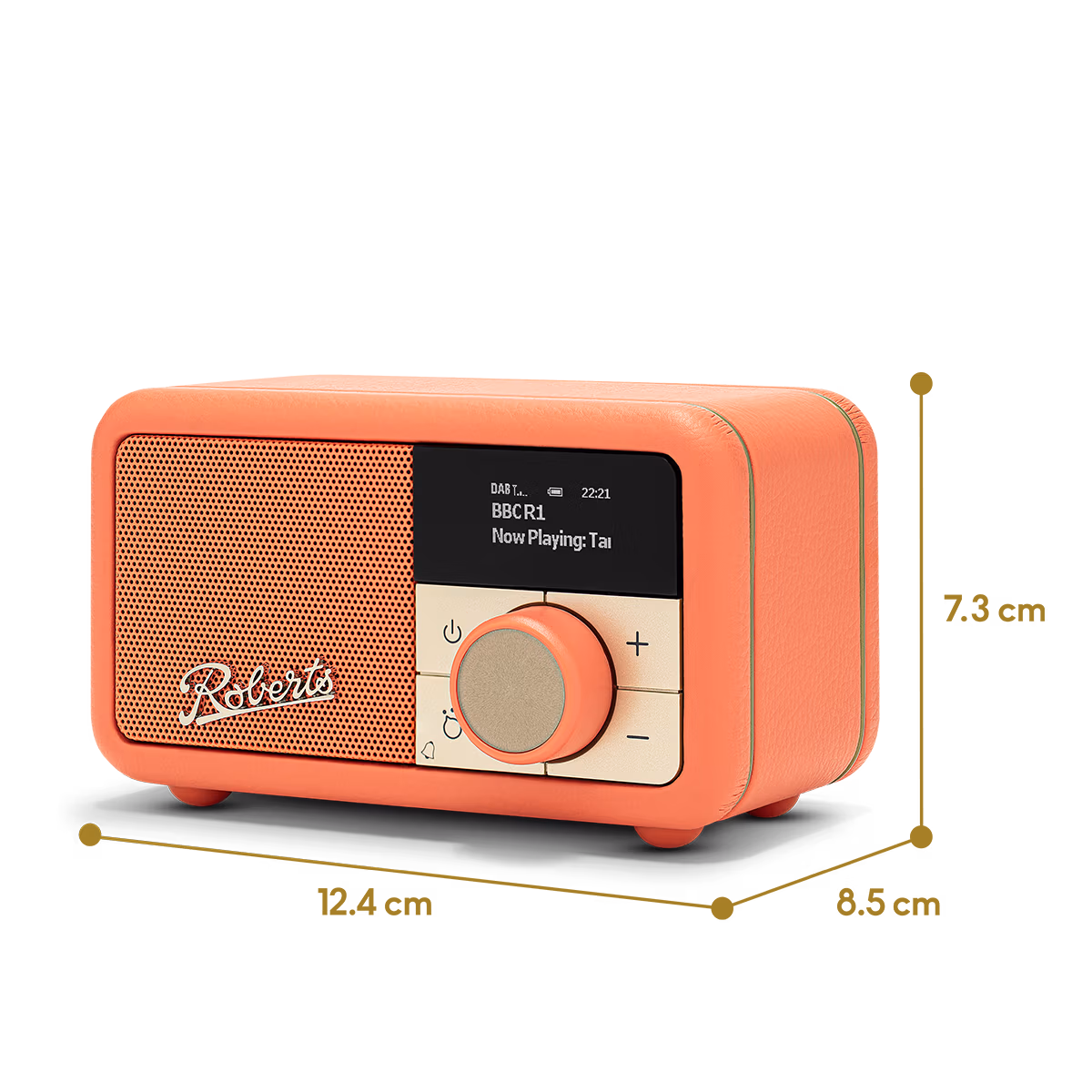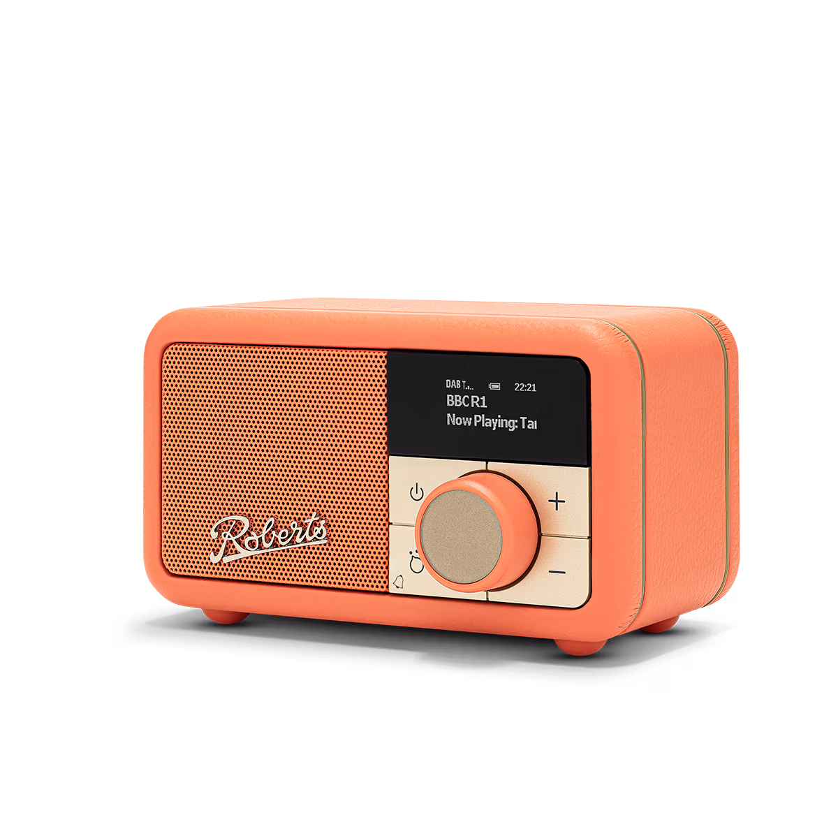 Roberts is al decennia bekend om zijn Revival-radio’s, geïnspireerd op modellen uit de jaren ’50. De Roberts Radio Revival Petite 2 Pop-sinaasappel brengt dat herkenbare design terug tot handpalmformaat zonder in te leveren op afwerking of uitstraling. De houten behuizing is bekleed met een hoogwaardige (leerachtige) bekleding, afgewerkt met chroomkleurige details en een klassiek Roberts-logo op de voorkant.