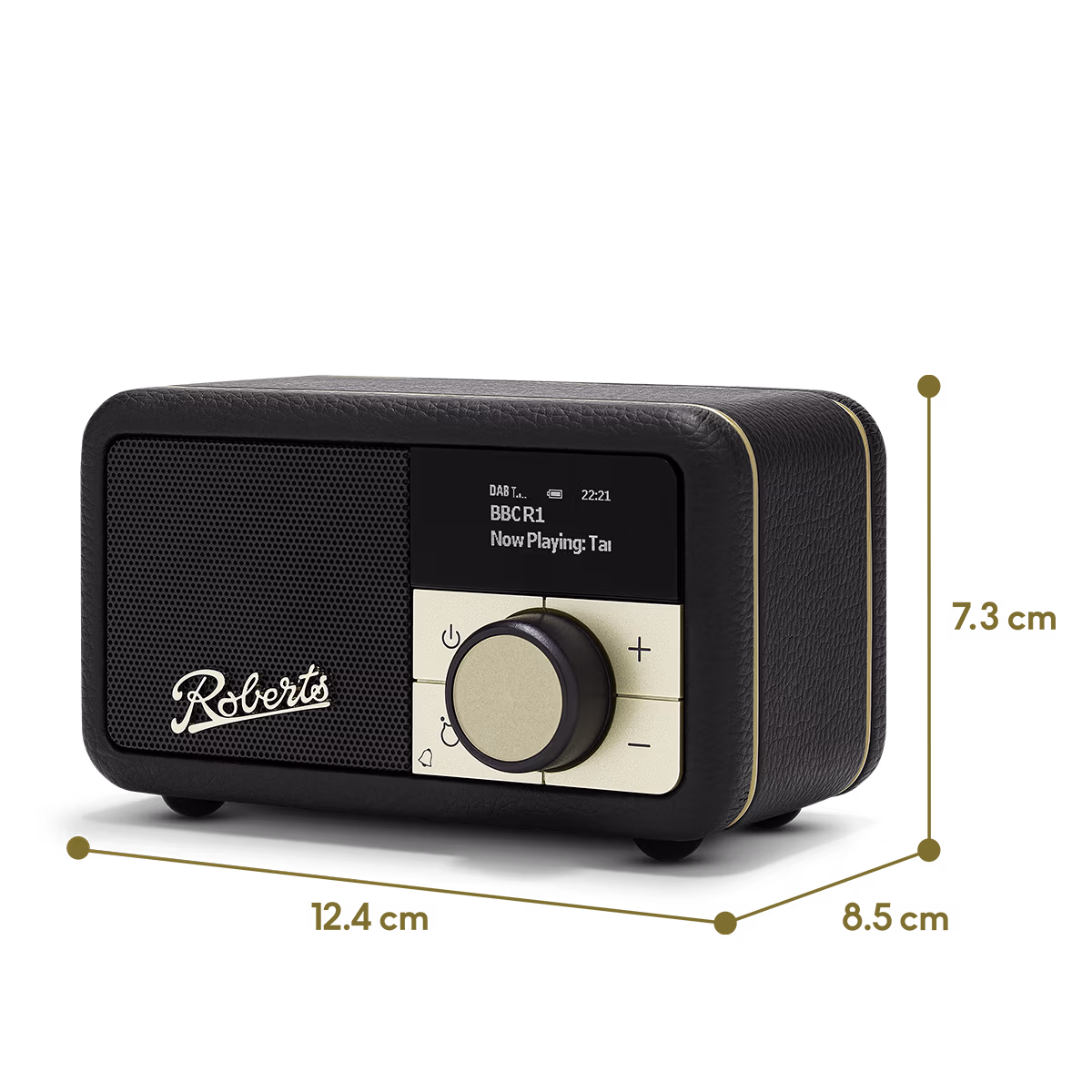 Roberts is al decennia bekend om zijn Revival-radio’s, geïnspireerd op modellen uit de jaren ’50. De Roberts Radio Revival Petite 2 Zwart brengt dat herkenbare design terug tot handpalmformaat zonder in te leveren op afwerking of uitstraling. De houten behuizing is bekleed met een hoogwaardige (leerachtige) bekleding, afgewerkt met chroomkleurige details en een klassiek Roberts-logo op de voorkant.