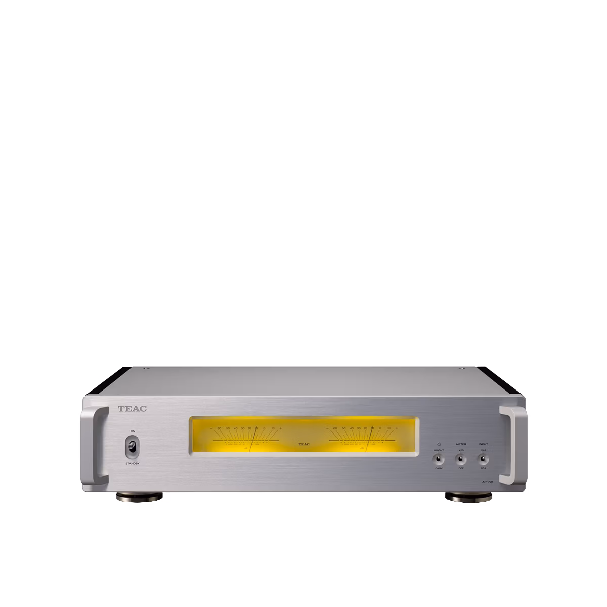 De dubbele VU-meters geven de AP-701 een heerlijk analoge uitstraling, maar TEAC maakt het ook praktisch: je kunt de helderheid aanpassen (dimmer met meerdere standen) én de meterrespons aanpassen met een meter gain instelling (+20 dB/normal/off). Zo blijft het mooi in een donkere luisterruimte, of juist goed zichtbaar overdag.
