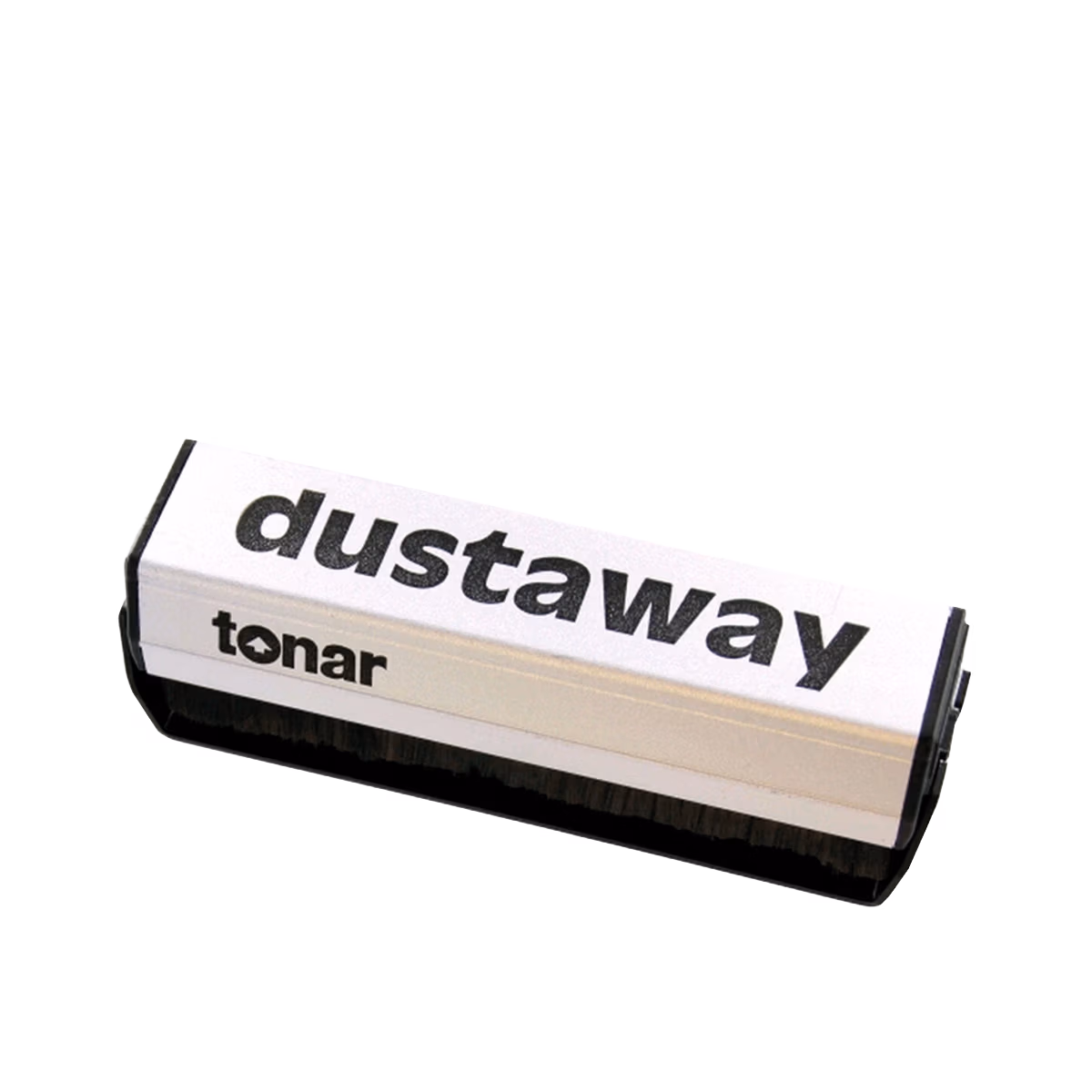 De Tonar Dustaway is een slimme combinatie-platenborstel die stof én statische elektriciteit aanpakt in één beweging. Dankzij het velours middenstuk en de carbon/koolstofvezels aan beide zijden maak je je vinyl vóór (of tijdens) het afspelen effectief schoon, tot diep in de groef.